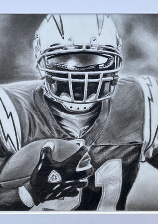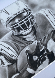 This charcoal portrait of NFL running back legend LaDainian Tomlinson was created as a gift for my older brother. It was based off a photo reference.